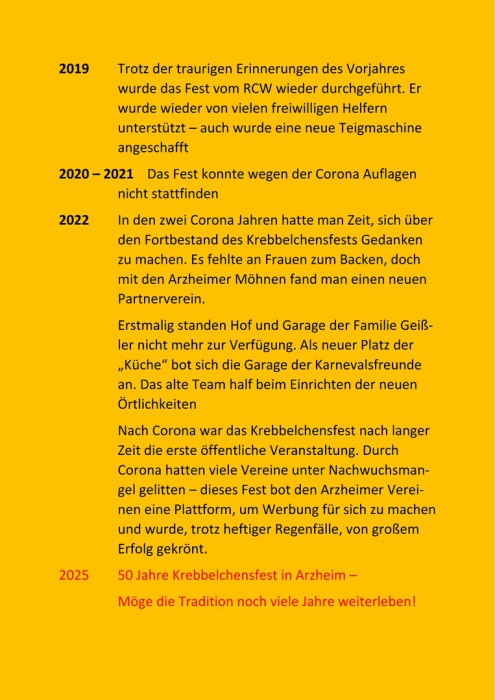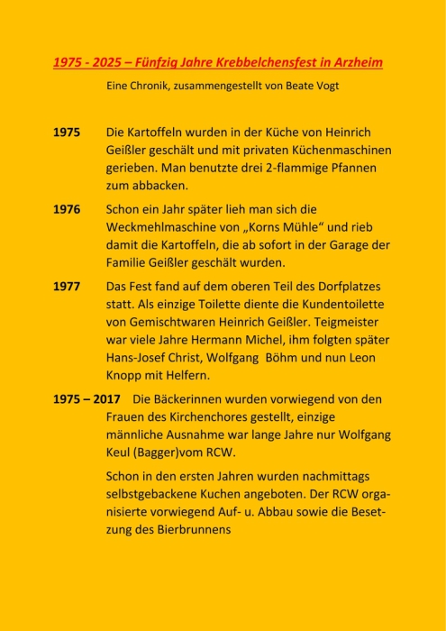 1975 - 2025 Fünfzig Jahre Krebbelchensfest in Arzheim