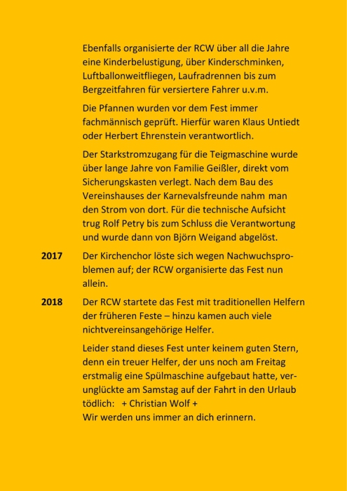 teilweise auch ferneren Umgebung. Viele, die aus beruflichen oder auch anderen Gründen aus Arzheim weggezogen sind, haben diesen Termin stets fest eingeplant und kommen jedes Jahr Anfang August