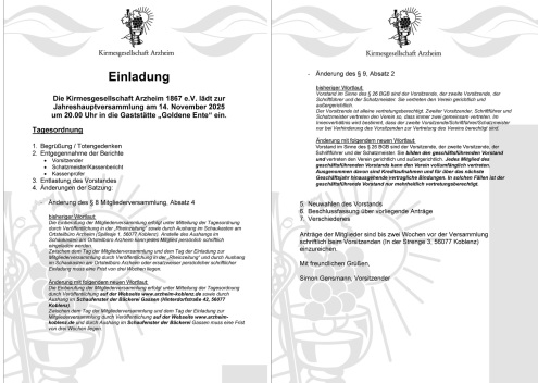 im Namen der Kirmesgesellschaft Arzheim 1867 e.V. möchte ich Sie zu unserer diesjährigen Arzheimer Kirmes herzlich willkommen heißen. Die Kirmes findet vom 02. bis 04.