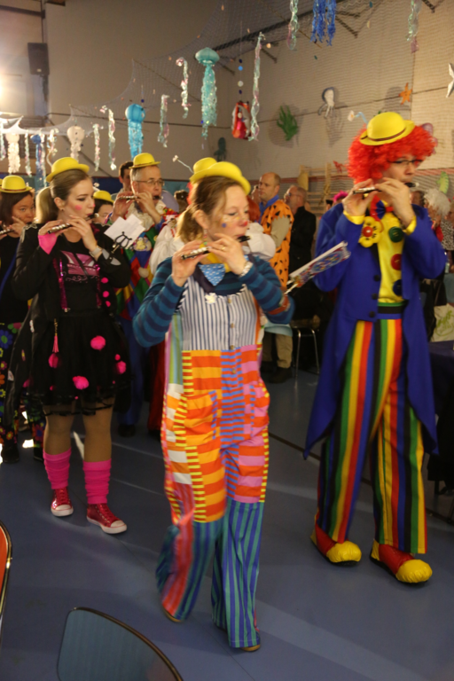 an dem die Karnevalsfreunde schon auf den MGV warteten. Hier löste sich der Zug aus dem prächtig geschmückten Fahrzeug der freiwilligen Feuerwehr und dem Traktorgespann des MGV auf. Die übrig