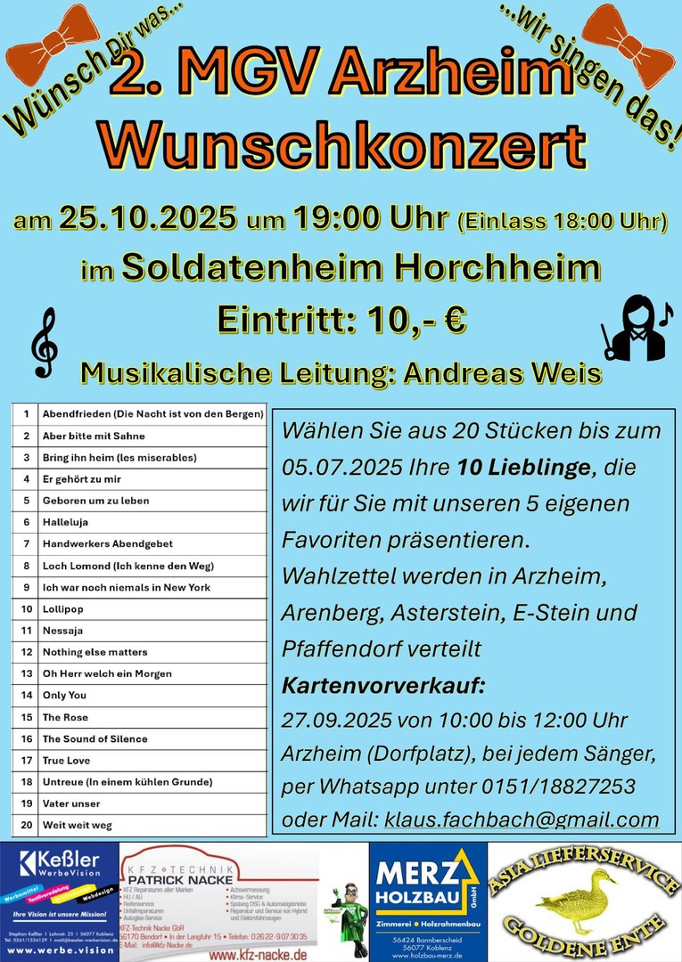 Wir erlauben uns darauf aufmerksam zu machen, daß auch Sie für den Fortbestand der Unternehmen wesentlich beitragen können, indem Sie bei Ihrem nächsten Einkauf oder Inanspruchnahme einer Dienstleistung unsere Arzheimer Geschäftsleute berücksichtigen. Vielen Dank !